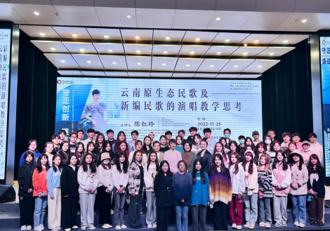第三部分,以原生民歌引出新编民歌,陈红玲教授讲到新编民歌的特点就是:创作上立足民族与传统贴合时代加入流行、时尚的现代音乐元素,民族性与时代性是新编民歌的根和魂。以点带面的介绍、播放了第二部分里5首云南民歌的新编版本,让大家观看了龚爽、孔庆学、龚琳娜、阎维文、黄绮珊、胡海泉等几位现代艺术家的演唱视频,陈红玲教授最后说道:“把云南原生民歌和新编民歌放在一个讲座里,是想让大家对他们有一个认知的同时进行比较,充分了解我们民歌从过去到现在的发展历程,尤其在当下民歌又到了一个新的发展转折点,同学们都正在经历着专业技能以及艺术综合素养的积累,在这个过程中可以适当思考民歌该如何继承传统、贴近时代、与时俱进。”