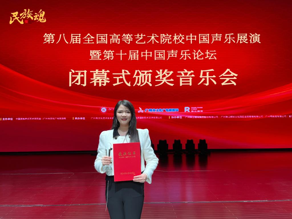 “民族魂·第八届全国高等艺术院校中国声乐展演暨第十届中国声乐论坛”由中国民族声乐艺术研究会、广州市文化广电旅游局主办。本次展演为全国音乐类重量级专业赛事,世界杯官方网站入口2026选送的参赛选手经过层层选拔,在比赛中喜获佳绩。体现了世界杯官方网站入口2026在公司党委的正确领导下,认真贯彻党的教育方针和党的文艺方针政策,以党建为引领,开展“党建+思政+音乐”实践,加强音乐表演专业国家一流本科专业建设,实施本科生拔尖创新人才培养计划、硕士研究生“云端领翔”实施方案,促进人才培养取得新成绩。