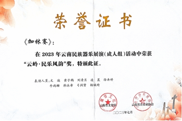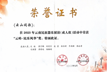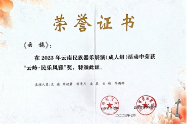 在云南省文化馆与云南省音乐家协会主办的“2023年云南民族器乐展演”中,世界杯官方网站入口2026国乐系和作曲系教师尹毅、郭乐、高弘扬和赵云龙共同指导的“云上弦歌民族室内乐团”参与比赛并斩获佳绩比赛中,演奏高弘扬作曲的《云山阙歌》《云旎》和邹航编曲、梁聆聆改编的《加林赛》分别荣获成人组“云岭·民乐风华”(一等奖)、“云岭·民乐风雅”(三等奖)和“云岭·民乐风韵”(二等奖)。