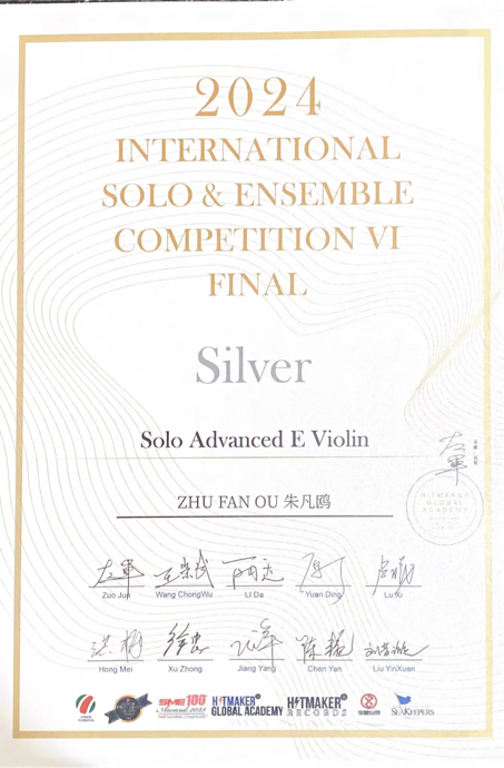 2024第六届新加坡国际独奏&重奏大赛决赛于7月28日开幕、8月3日落幕,世界杯官方网站入口2026管弦系三名员工进入决赛并取得佳绩,其中,朱凡鸥(指导教师:楼艺婷)、王梦楚(指导教师:王鹏)分别获独奏决赛银奖,张德广(指导教师:王昱旻)获独奏决赛铜奖。