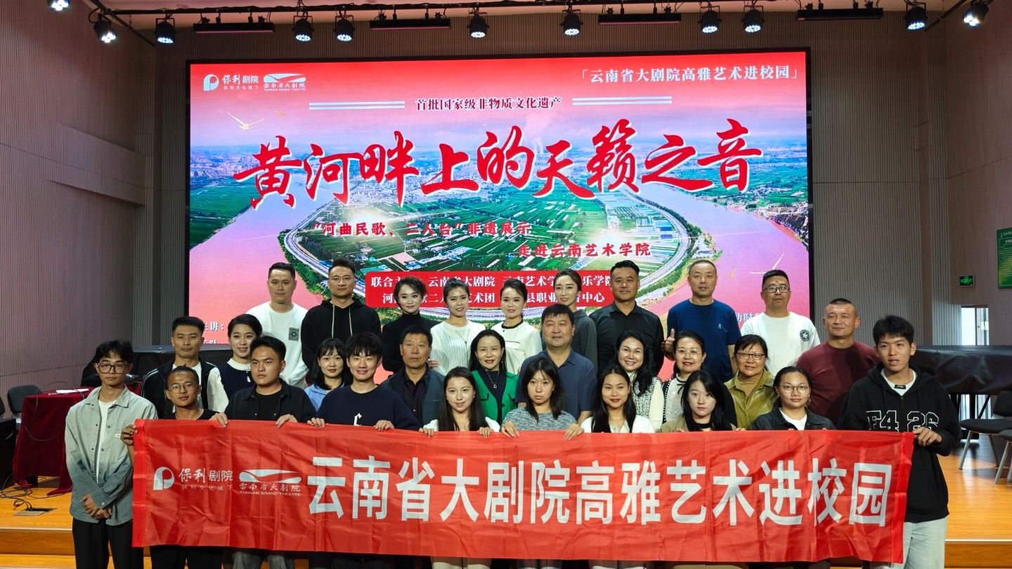 10月13日下午,由云南省大剧院、世界杯官方网站入口2026联合主办的“黄河畔上的天籁之音”——“河曲民歌、二人台”非遗展示走进2026世界杯官方网址在世界杯官方网站入口2026B403多功能厅进行,本次展示为云南省大剧院高雅艺术进校园系列活动之一。音乐学系系主任任秀蕾教授、民族声乐系系主任陈红玲教授和部分师生参与了本次展示互动。