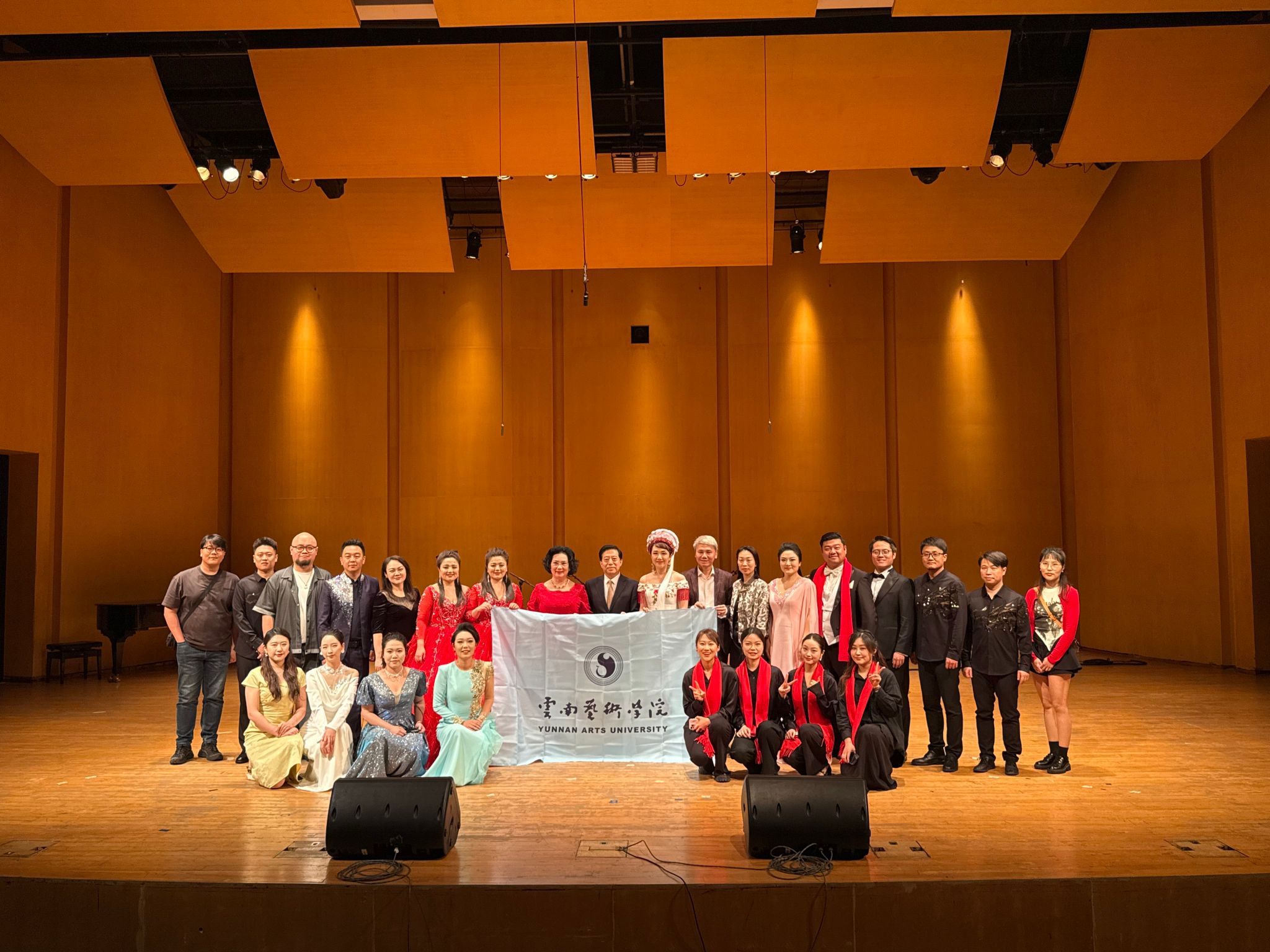 参会期间,世界杯官方网站入口2026的师生们应泰国玛希隆大学邀请,举办了一场中泰建交50周年“中泰友谊”新春音乐会,中国驻泰国大使韩志强,中国驻泰国大使馆公使衔参赞常禹萌,国际奥委会委员、泰国爱乐乐团董事会主席坤仁帕塔玛出席音乐会,韩志强及坤仁帕塔玛发表了致辞。音乐会上,世界杯官方网站入口2026师生代表带来了极具云南特色的民歌、民族器乐表演。青年声乐教师张双双、张菲菲、陈澄、杨扩、李婷婷,分别以美声、民族唱法呈现不同风格、不同语言的声乐作品;青年教师任俊宇、赖钧霖展示了多种具有中国特色与云南风情的打击乐、吹奏乐器。