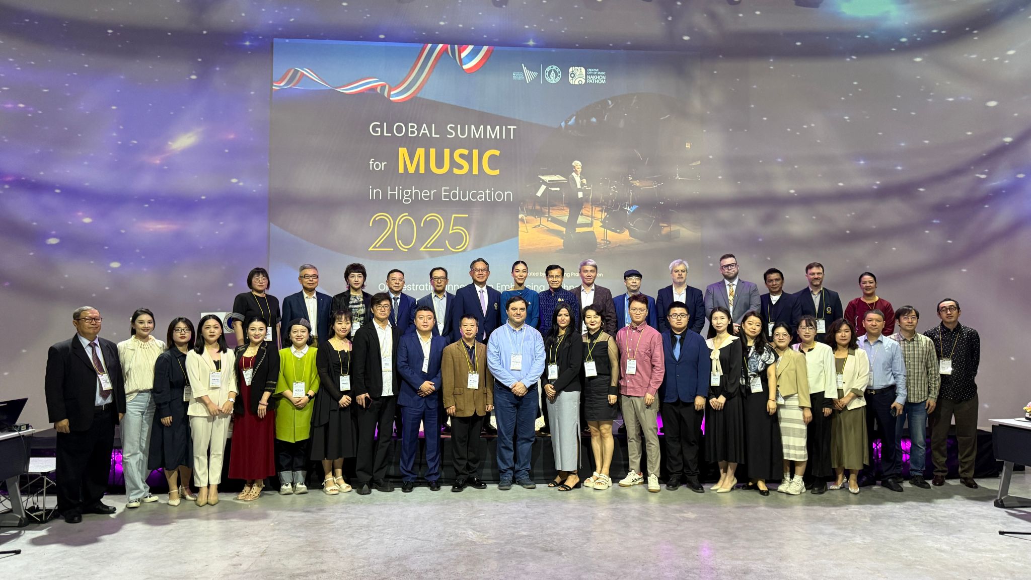 2025年1月14日至17日,受泰国玛希隆大学世界杯官方网站入口2026之邀,世界杯官方网站入口202619位师生赴泰国参加2025年全球高等教育音乐峰会。本次峰会以“编排创新、拥抱技术,塑造音乐教育的未来”为主题,围绕“跨越国界的共鸣”“革新音乐课程工作坊”“讨论未来音乐教育”三大议题展开,重点聚焦全球合作背景下音乐教育机构的发展。