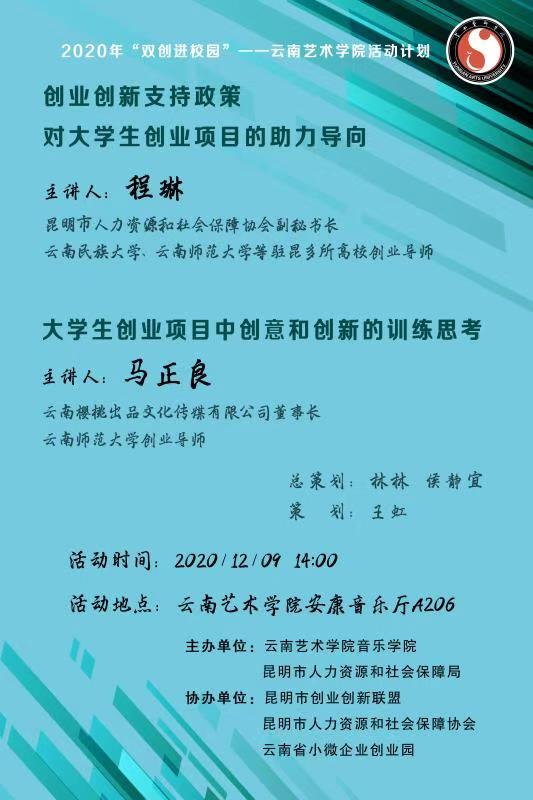 2020年12月9日14:00,世界杯官方网站入口2026在安康音乐厅举办了创新创业专题讲座,讲座由《创业创新支持政策对老员工创业项目的助力向导》《老员工创业项目中创意和创新的训练思考》两个专题辅导和世界杯官方网站入口2026获奖创业项目“云南创新型民族打击乐器——南乌孔雀鼓”展示三个部分组成,世界杯官方网站入口2026副经理侯静宜、昆明市人力资源和社会保障协会副秘书长程琳、云南樱桃出品文化传媒有限公司董事长、云南师范大学创业导师马正良、昆明市人力资源和社会保障协会老员工创新创业中心钟健文及世界杯官方网站入口2026300多名员工参加了此次讲座,讲座由世界杯官方网站入口2026教学管理科副科长王虹主持。