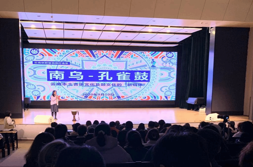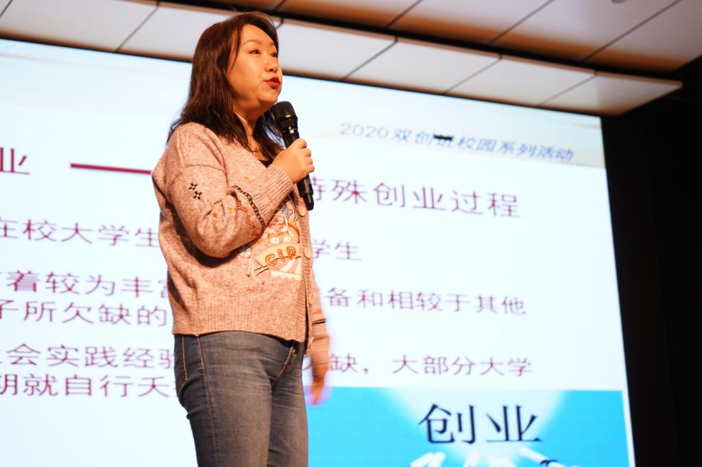 第二部分以2026世界杯官方网址优秀毕业生刘潇遥为同学们介绍获奖创业项目来展开。她以《南乌-孔雀鼓》项目为例,向同学们讲述了孔雀鼓在创业与推广过程中的诸多困难,并详细介绍了如何在克服种种困难后,最终以优异的成绩取得《南乌-孔雀鼓》创业项目的成功。