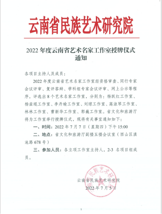世界杯官方网站入口2026经理林林教授的“林林工作室”获评2022年度云南省艺术名家工作室,全省仅评选出8个。