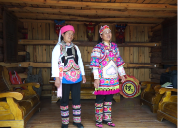 7月9日,课题组将本次田野调查最后一站选定于彝族《梅葛》的发源地——姚安县马游村。初到马游村,只见村落四面环山,房屋依山而建,村中妇女皆穿着彝族倮倮颇支系传统服饰,其中一位年迈的老奶奶拄着拐杖,跨入其中一栋黄色房屋中,那便是本次课题组开展采录的地点——《梅葛》传习馆(即梅葛坊)。从7月9日至7月18日,课题组在此共对十余位民间艺人进行访谈和采录,共采集《梅葛》20余首,葫芦苼调约20调,并由郭晓炜老师协助对采录资料进行翻译和校对。