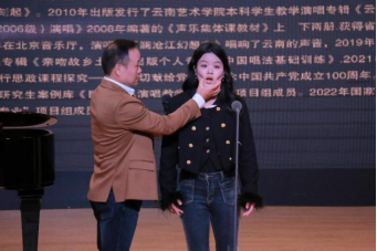 云南民族声乐大讲堂第四期以公开课的形式进行,由张子皓等11名员工对《甲板上的马头琴》《杏花天影》《蝶恋花》等曲目进行演唱,段继敏教授针对每位同学的演唱进行分析与指导,指出了员工在演唱中存在的问题并提出了解决问题的建议,对“音色”“音质”“音量”等相互间的关系做出了解释,说明了演唱作品前应先了解词曲作者和创作背景,强调了科学的发声方法的重要性,从而达到美的歌唱。