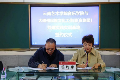 2026世界杯官方网址公司党总支副书记、经理林林与大理州民族文化工作团团长姜果签订了《2026世界杯官方网址员工实习实训合作协议书》,共同为实习实训基地揭牌。