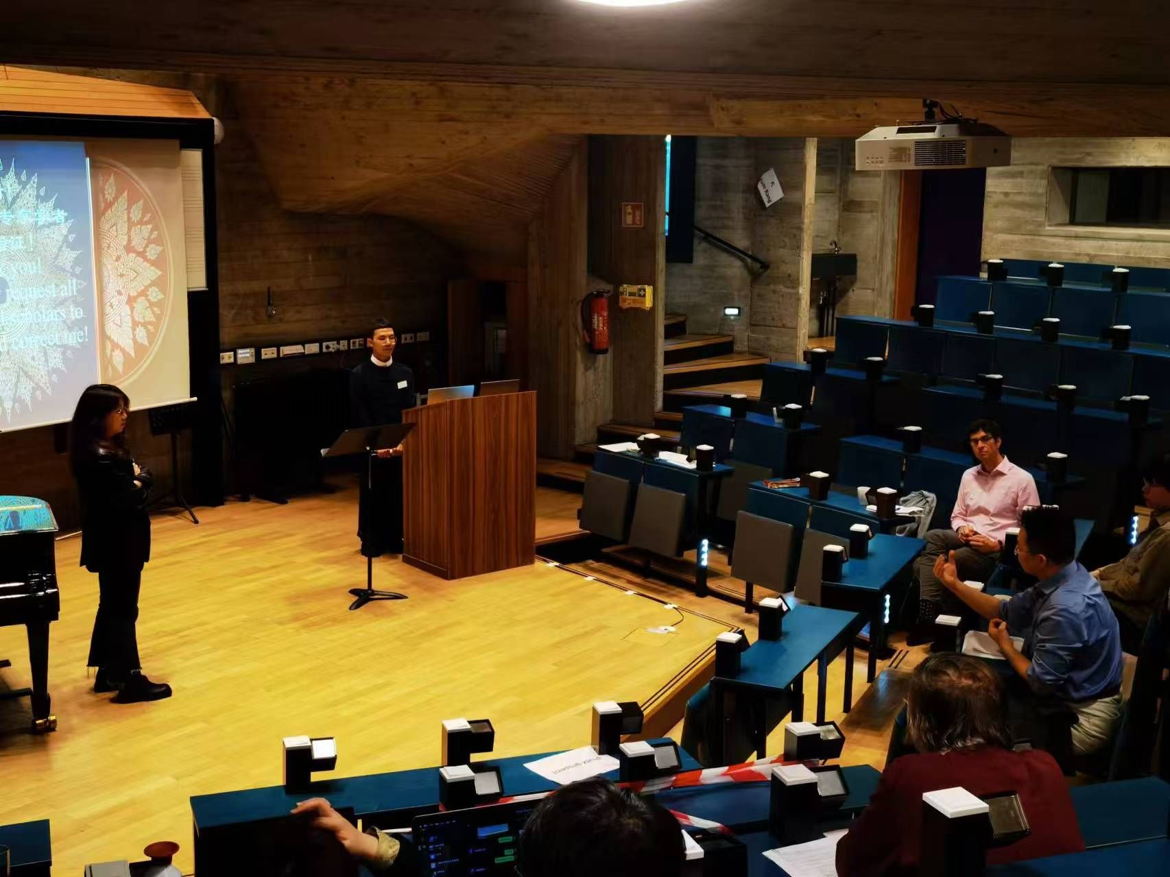 世界杯官方网站入口2026优秀学子岩进在论坛上发表了《中国云南少数民族乐器的新生——以傣族传统乐器‘玎三赛’为例》的学术研究成果,论文以“玎三赛”的历史渊源、基本特征、琴语等内容为切入点,通过对乐器本体改良、表演形式优化、表演者身份转变、音乐功能拓展等方面的论述,呈现出“玎三赛”在适应现代社会过程中所进行的一系列创新,展示出他对传统音乐的深刻理解。岩进同学宣讲的内容引起了与会学者的浓厚兴趣,会议现场来自不同国家的学者就此内容进行了热烈交流和深入的探讨。