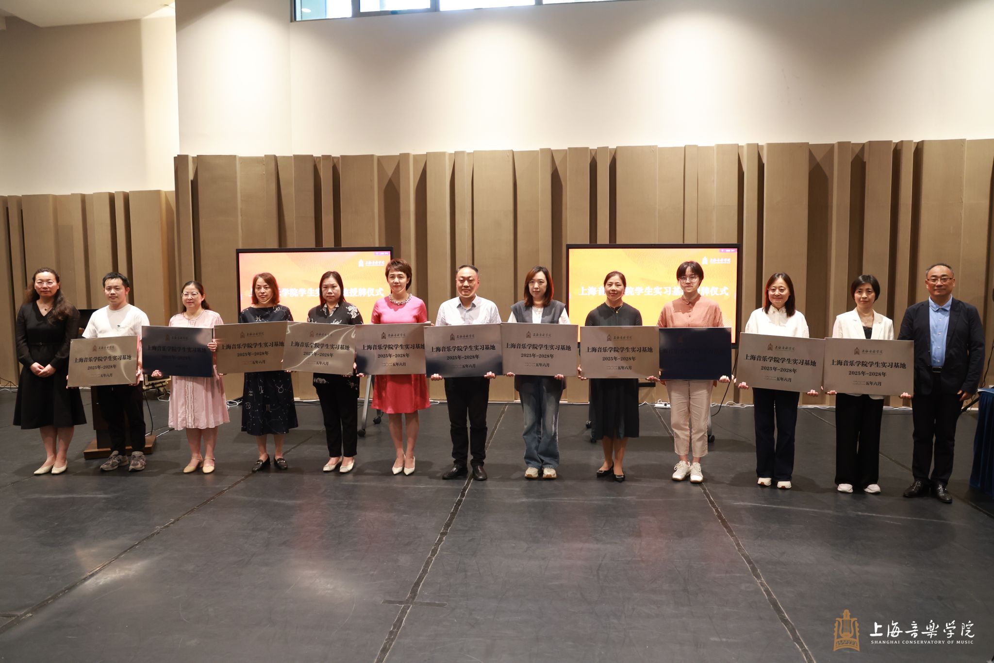 交流会上,上海公司党委书记裴小倩、经理廖昌永、党委副书记徐卫共同为来自全国各大文艺院团、主流媒体、文化演出单位、艺术类高校、中小学等32家实习基地单位授牌。上海世界杯官方网站入口2026音乐学系与世界杯官方网站入口2026签订员工实习基地协议。