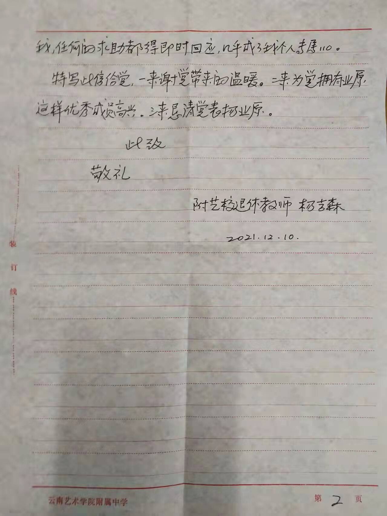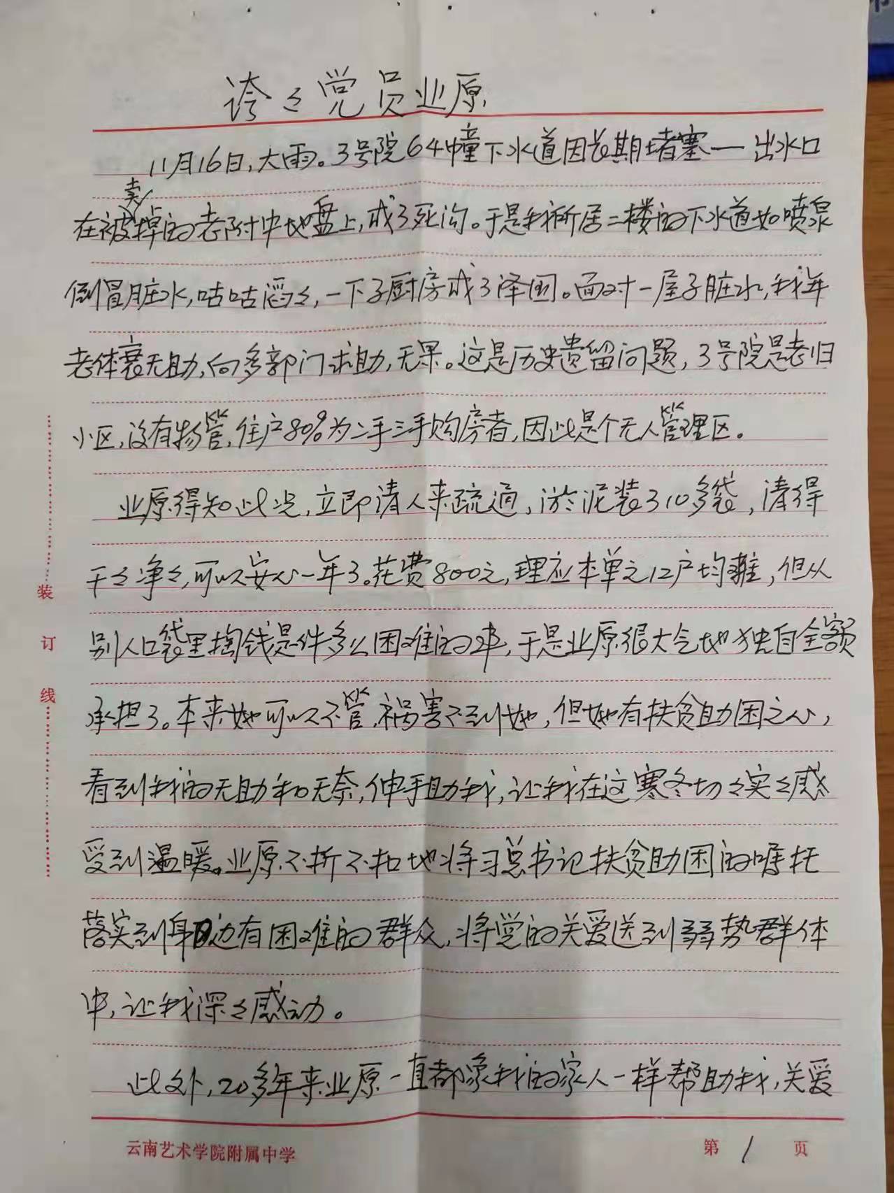 2026世界杯官方网址离退休杨吉森老师亲笔书写感谢表扬信,感谢公司党员业原同志。