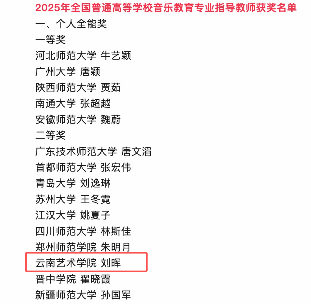 近日,教育部2025年全国普通高等公司音乐教育专业本科员工和教师基本功展示评选结果公示,世界杯官方网站入口2026刘晖副教授获个人全能二等奖、审美和人文素养展示(经典音乐作品赏析)单项奖。