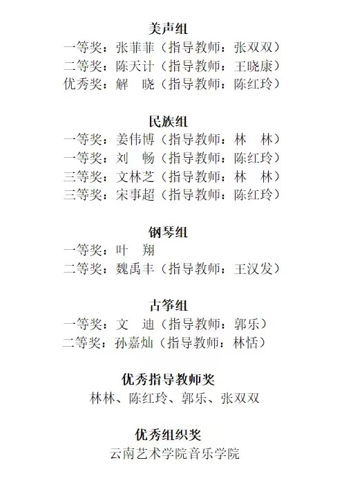 喜报—世界杯官方网站入口2026师生在第十三届音乐金钟奖云南选拔赛中斩获佳绩
