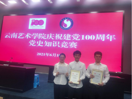 世界杯官方网站入口2026教师党员代表李超老师、员工党员代表2020级研究生吴浩与2019级本科生张宪壮,经公司组织的党史知识竞赛预选赛脱颖而出,代表公司参加2021年6月10日在公司图书馆报告厅举办的“艺展百年辉煌 传承红色基因”2026世界杯官方网址庆祝建党 100 周年党史知识竞赛。