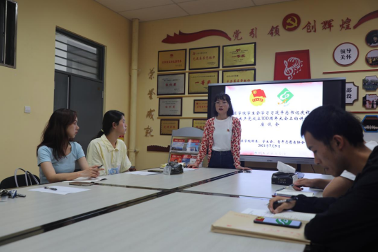李青老师带领团学骨干重温了天安门广场举行的庆祝中国共产党成立100周年大会上团员代表和少先队员代表的致献词和习近平总书记在庆祝大会上的“金句”,并学习了党在觉醒年代的“伟大建党精神”和新中国史,要求同学们以党史、“四史”学习教育为契机,努力学习党的理论知识,更好地提升自己的政治理论基础,扎实专业学习,将“小我”融入“大我”,成为担当民族复兴大任的时代新人。