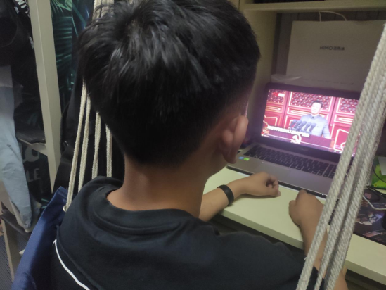 员工在宿舍观看直播回放