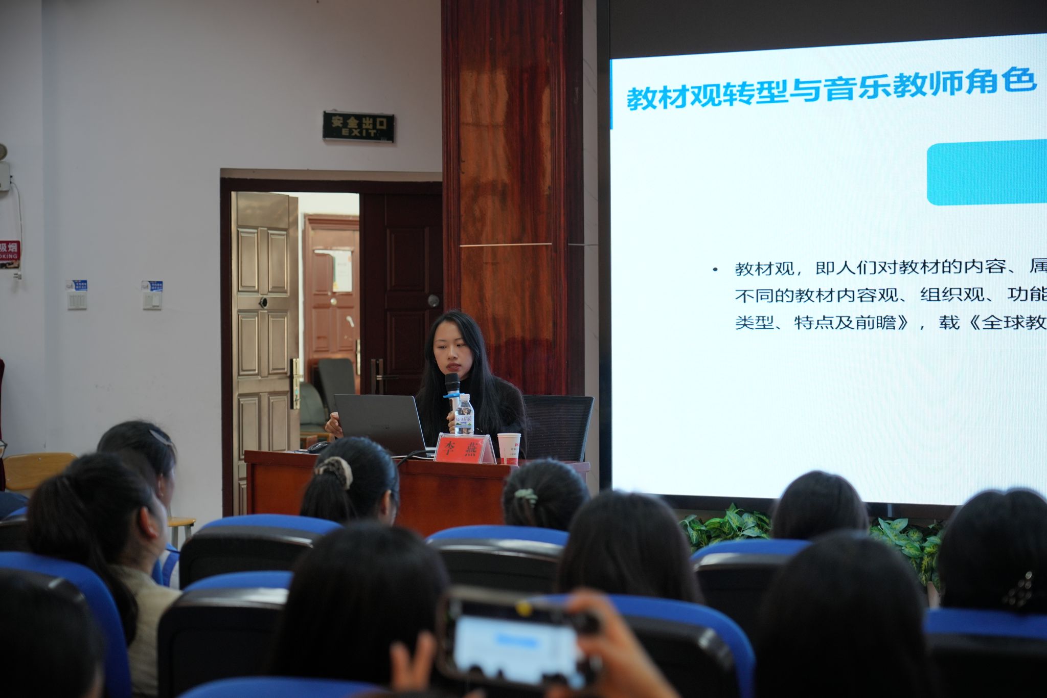 李燕博士以《中小学音乐教材分析的多重向度——教师作为研究者与设计者》为题,深刻阐述了素养时代下音乐教师的角色转型。讲座从“教材观”的革新切入,指出教师应从传统的教材执行者,转变为兼具研究意识与设计能力的教育主体。讲座系统解析了音乐教材分析的研究路径,包括提出核心问题、梳理问题来源、界定研究对象、构建理论框架及选择研究方法等环节,强调“研究问题来源”是推动课题深入的关键视角。