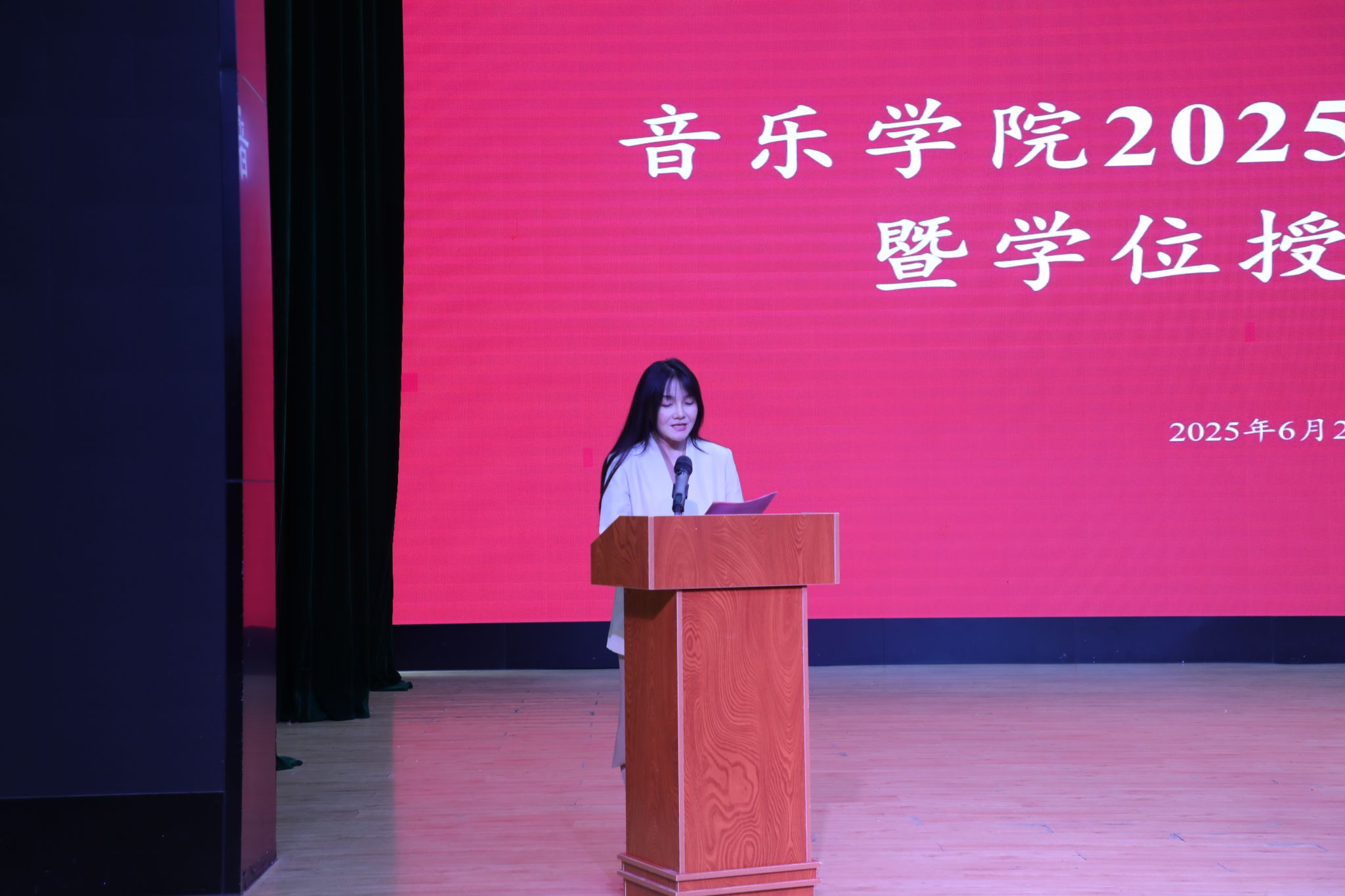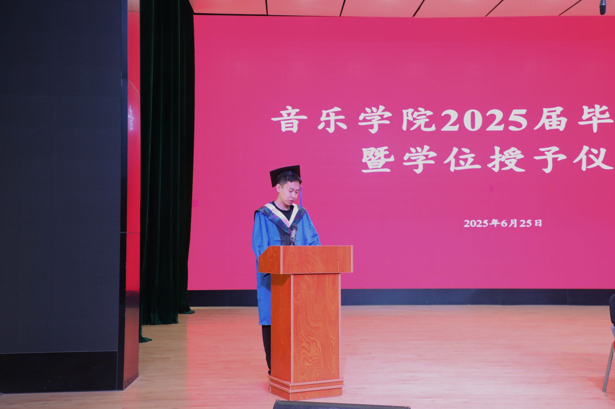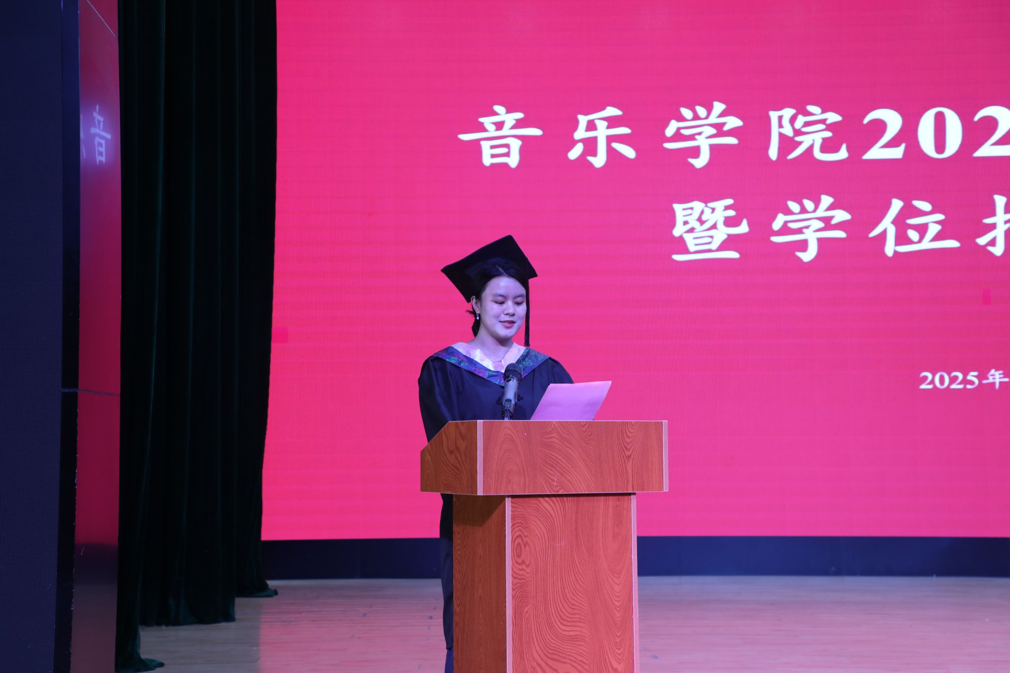 即将奔赴公安战线的硕士研究生唐凯瑞和立志投身教育事业的本科生颜娅作为毕业生代表发言,他们深情回顾了在校求学的点滴成长,由衷感谢公司和师长的悉心栽培。他们表示,未来将带着珍贵的“音乐印记”,勇敢地踏上新征程,用音乐传递真善美,用行动践行责任,用奋斗书写青春。